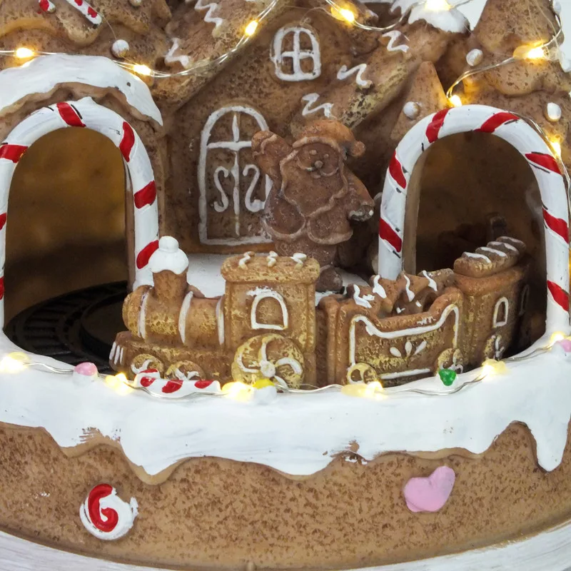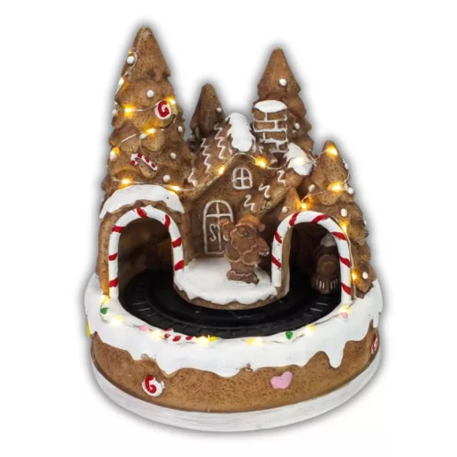 Világítós mézeskalács ház, vonattal – karácsonyi dekorációhoz