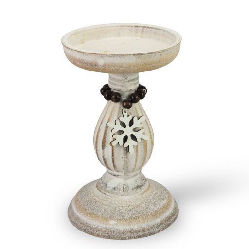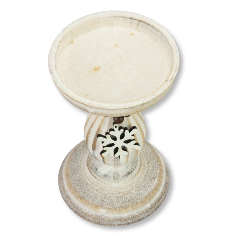 Vintage fehér gyertyatartó fából 10,5x16,5cm – esküvői dekorációhoz