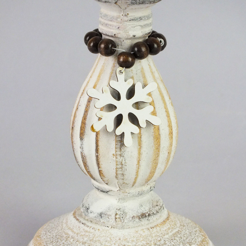 Vintage fehér gyertyatartó fából 10,5x16,5cm – esküvői és kerti parti dekorációhoz