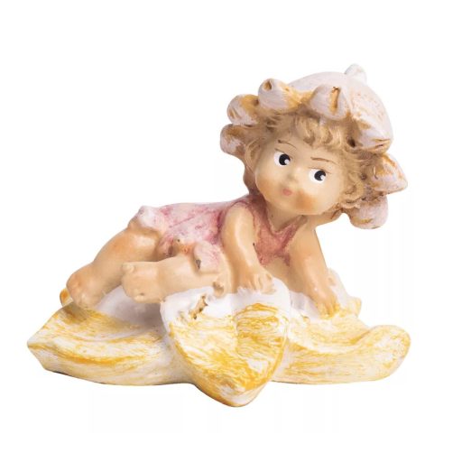 Virágtündér - levélen ülő, rózsaszín ruhácskában 7*6cm, 431791 – tündérkerthez és kerti dekorációhoz