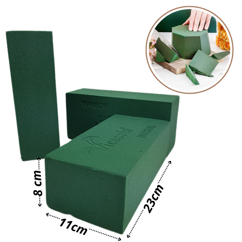 A tűzőhabok dobozban érkeznek, külön nincsenek becsomagolva.Kreatív kompozíciók elengedhetetlen kelléke, vágott élővirágok rögzítéséhez.Használata: Merítsd a méretre vágott tűzőhabot pár másodpercre vízbe, (ne nyomd, mert akkor a közepe száraz marad) amíg jól meg nem szívja magát. A színéről és a súlyáról fogod tudni, hogy mikor érted el a kívánt hatást. Majd helyezd bele a vízhatlan edénybe, amiben a dekorálni fogsz. A növények szárát vágd hegyesre és szúrd a tűzőhabba a kívánt helyükre.A kompozíciód tartós lesz mintha vázába tetted volna a virágokat.Méretek: szél.: 11cm, hossz.: 23cm, mag: 8cm, Vizes Oázis - Virágkötészeti kellékek -. Felhasználható koszorúkészítéshez, ajtódísz és asztaldísz alapjának.