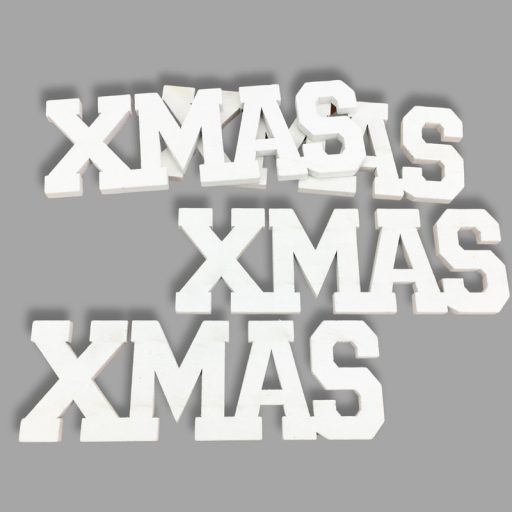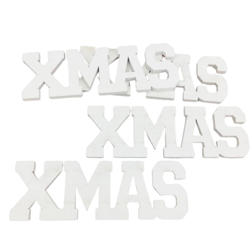 Xmas felirat fehér 15cm 4db/csomag-KIFUTÓ – koszorúhoz, asztaldíszhez