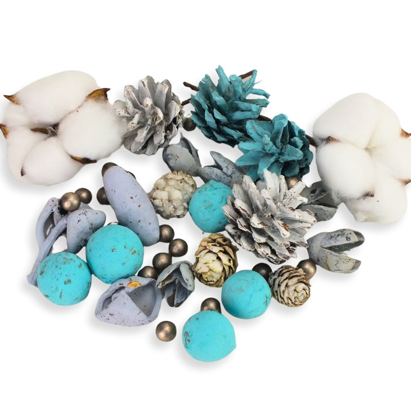 XXL terméscsomag a tél színeiben, különböző téli dekorációk elkészítéséhez. Felhasználható karácsonyi koszorúhoz, ajtódíszhez és asztaldíszhez. Más termésekkel, szalaggal és fenyőágakkal kombinálva természetes karácsonyi