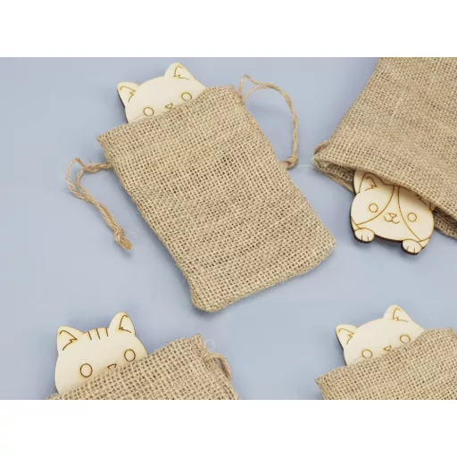 Az egyedi mintájú, fából készült cuki macska formáink mindegyike beköltözött egy zsákba. Azt mi sem tudjuk, hogy melyik mely zsákba került, így véletlenszerűen fognak gazdára találni. Számos felhasználhatóság, pl.: Színezd ki, adj rá masnit és kész is az ajándék. Festeni is lehet rá, díszítheted gyöngyökkel, szövetekkel vagy készíts belőle hűtőmágnest. 9x5 cmA termék a zsákban egy darab macskát tartalmaz!